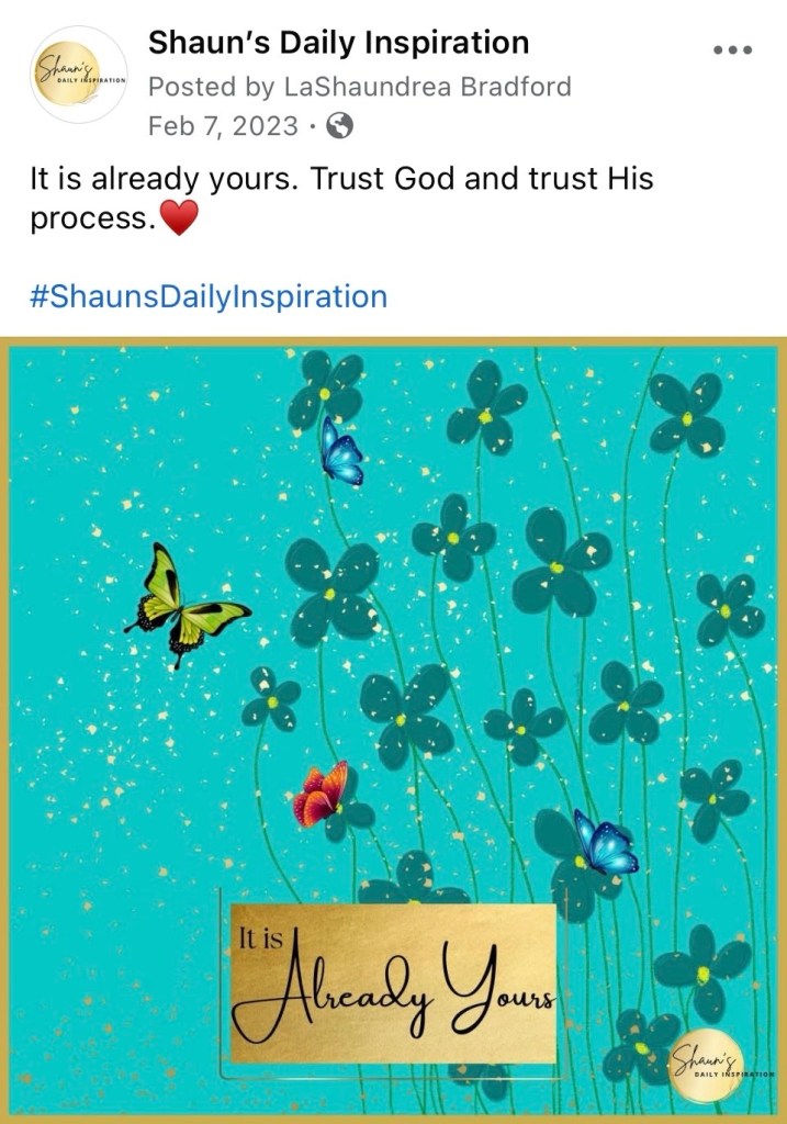 Shared on Instagram with the song “Overcomer,” by Tamela Mann. Click “View Profile” to listen.