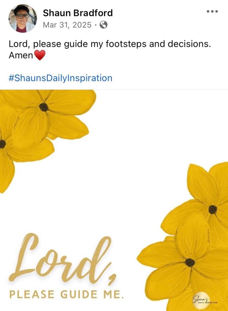 Today, I’m asking God to do the same—to please guide my footsteps and decisions. May they be aligned with Him and His plan for my life. Amen