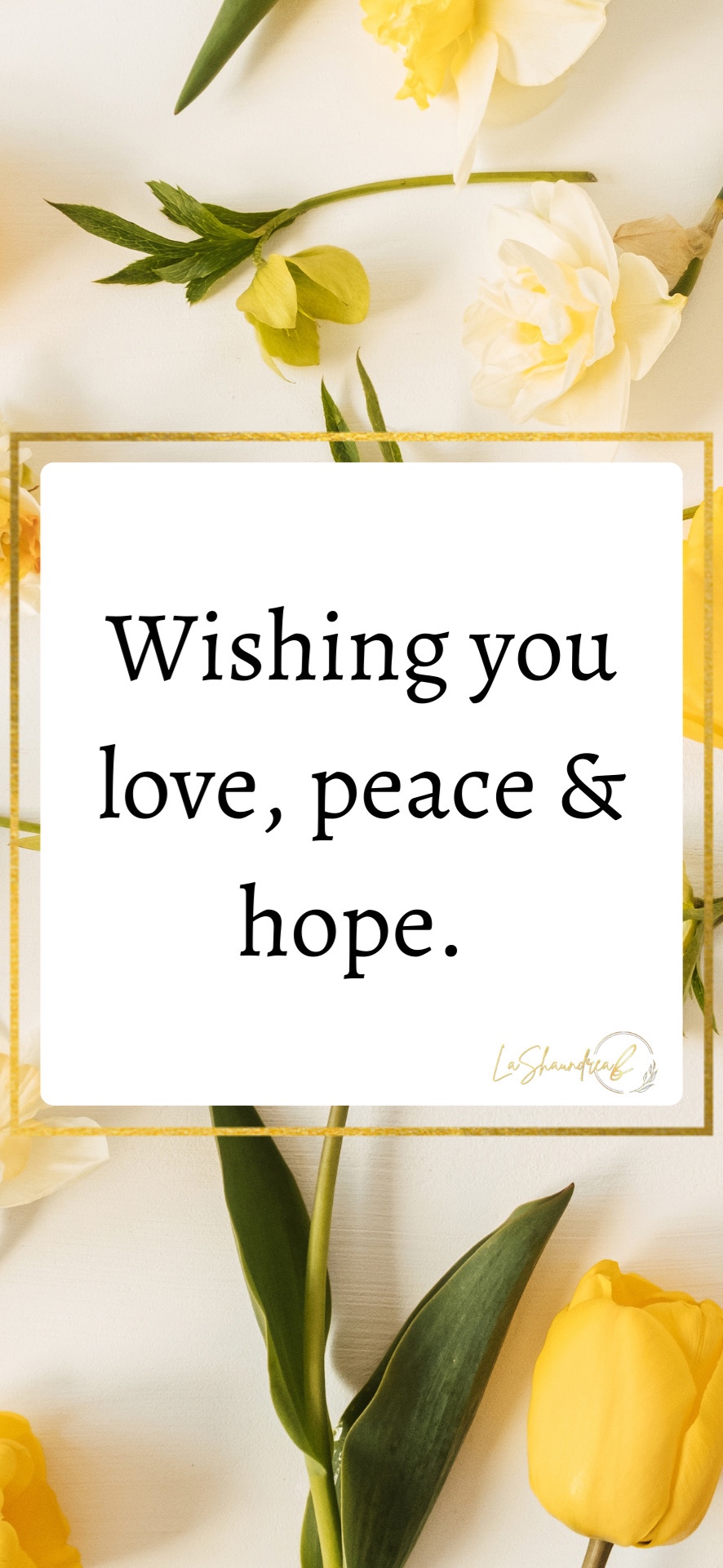 LifeLove, Peace & Hope May 25, 2021 Shaun Bradford Love, Peace & Hope Share this: Click to share on X (Opens in new window) X Click to share on Facebook (Opens in new window) Facebook Like Loading... Published by Shaun Bradford My life is full of adventures— good and bad, and I’m living in every moment. Can’t help but be present. View all posts by Shaun Bradford