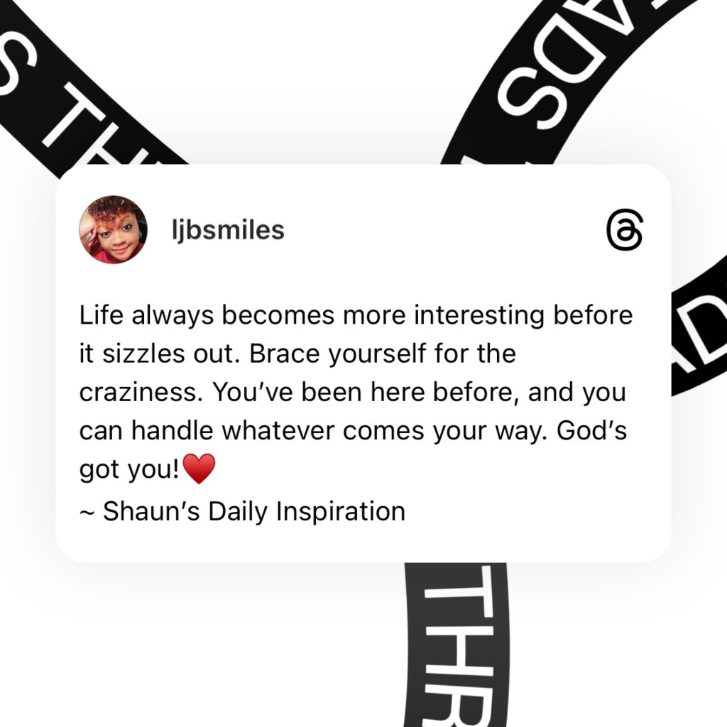 LifeYou Can Handle Whatever Comes Your Way October 13, 2023 Shaun Bradford It may rock you to your core, but it will not take you out. You got this!!♥️ ~ Shaun In God’s hands. Share this: Click to share on X (Opens in new window) X Click to share on Facebook (Opens in new window) Facebook Like Loading... Published by Shaun Bradford My life is full of adventures— good and bad, and I’m living in every moment. Can’t help but be present. View all posts by Shaun Bradford