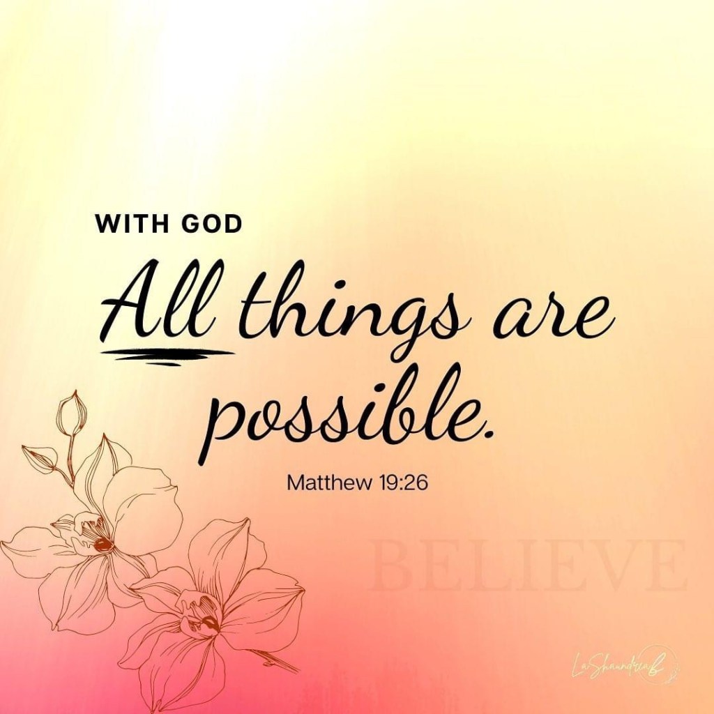 The day God showed me that all things were (are) possible through Him. All I had (have) to do is believe.