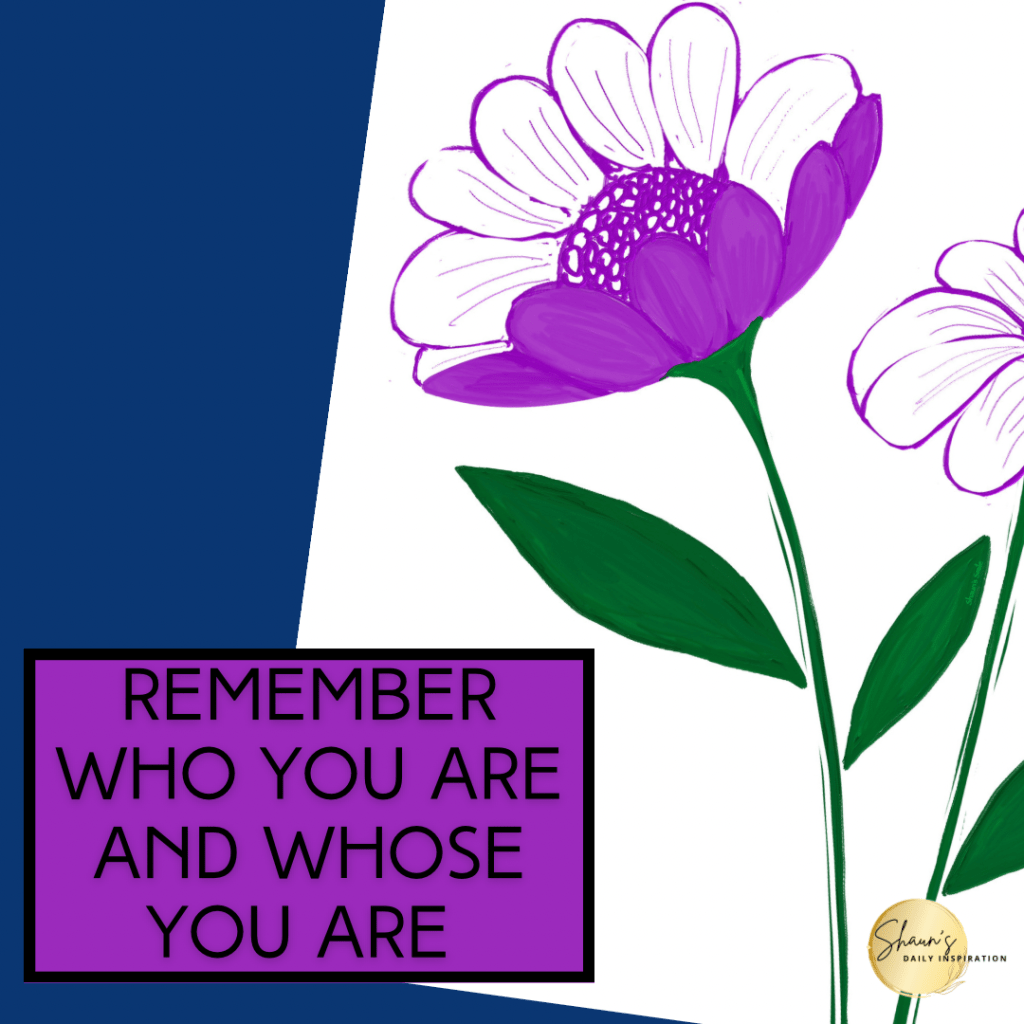 Remember who you are and Whose you are. You are not just any old person. Nope. You, my friend, are a child of THE Most High God. Yes, YOU!♥️ ~Shaun