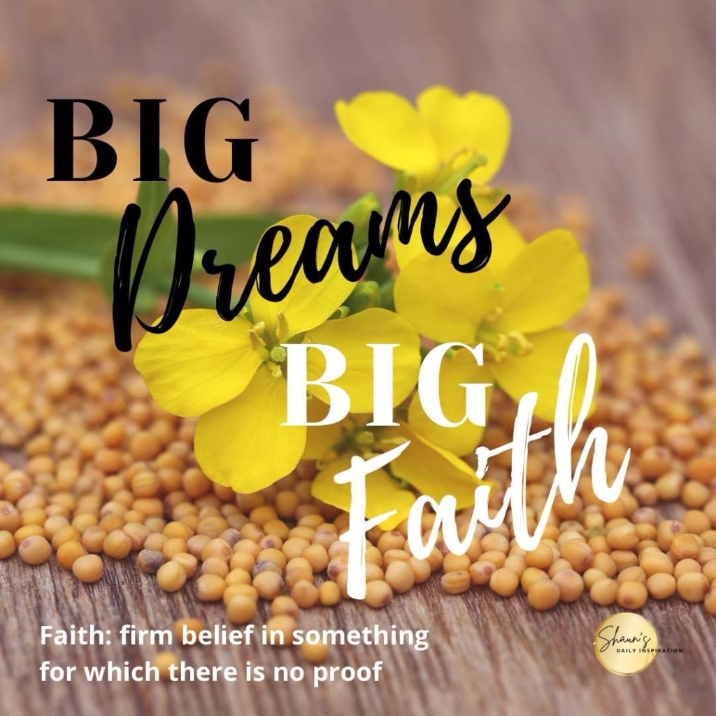 Do not let the size of a mustard seed fool you. Although tiny in size, it’s big, bold, and strong; and it carries a faith and confidence that can move mountains. Big dreams require big faith, which can be as small as a mustard seed.