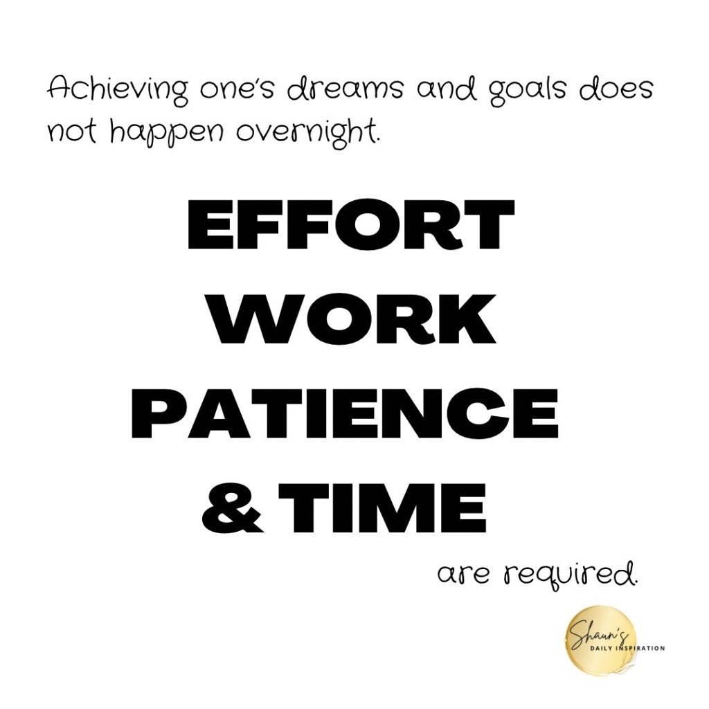 Dreams and goals don’t magically appear nor do they happen overnight. They require effort, work, patience and time.