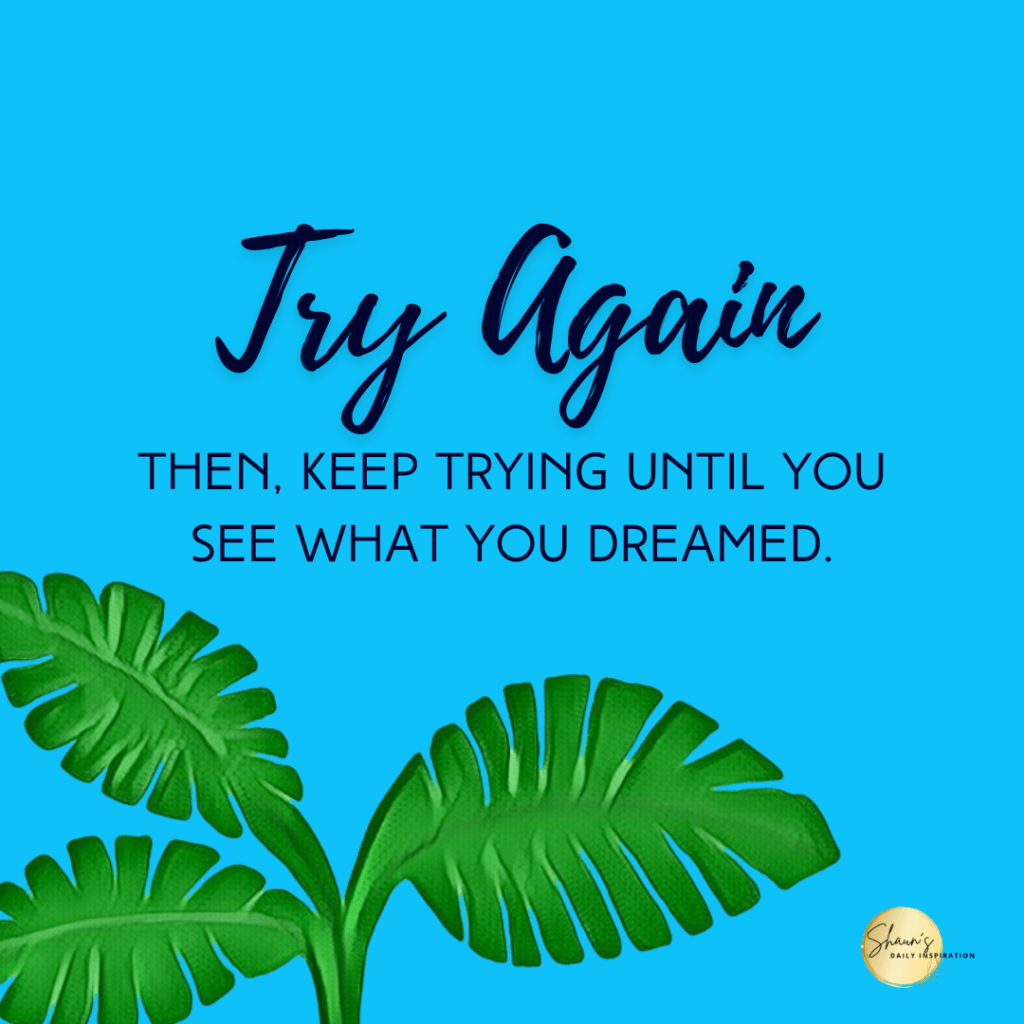 Try again and keep trying until you get what you desire. Do not allow anyone or anything to stop you, not even you! Sometimes we are our own worst enemy. We allow our emotions, insecurities, egos, and thoughts of inferiority to stop us from seeing things through. Not this time. Today, we are going to block everything that hinders us from moving forward. We can do it!