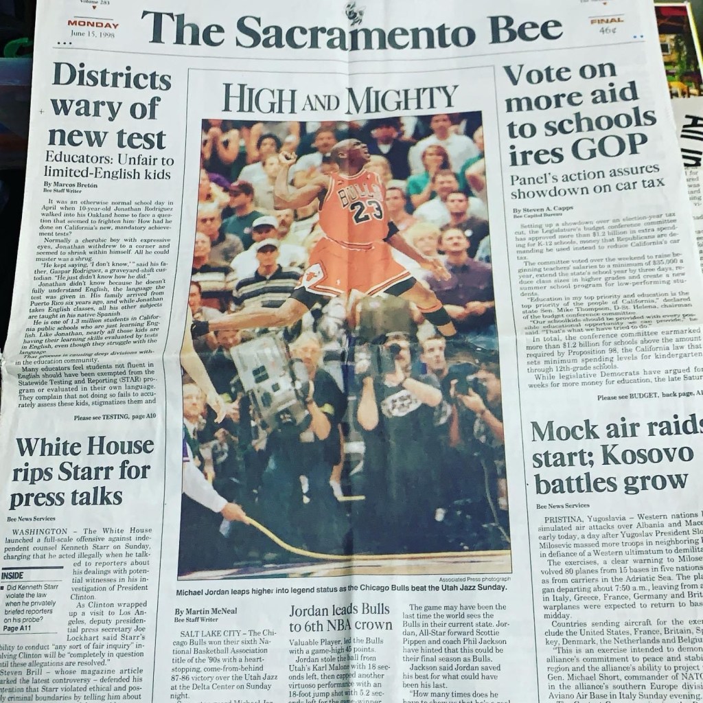 Several weeks ago, I shared a Facebook memory with excerpts from my journal entry from 1998 along with a few pictures of Michael Jordan memorabilia that I had collected during that era. I had originally shared them on Facebook while watching Michael Jordan’s documentary, “The Last Dance,” which aired in April and May of 2020. In that post, “The Last Dance,” I said that I would share the newspaper articles if I came across them in my Facebook memories. Well, here they are, along with a Space Jam coin I had found.