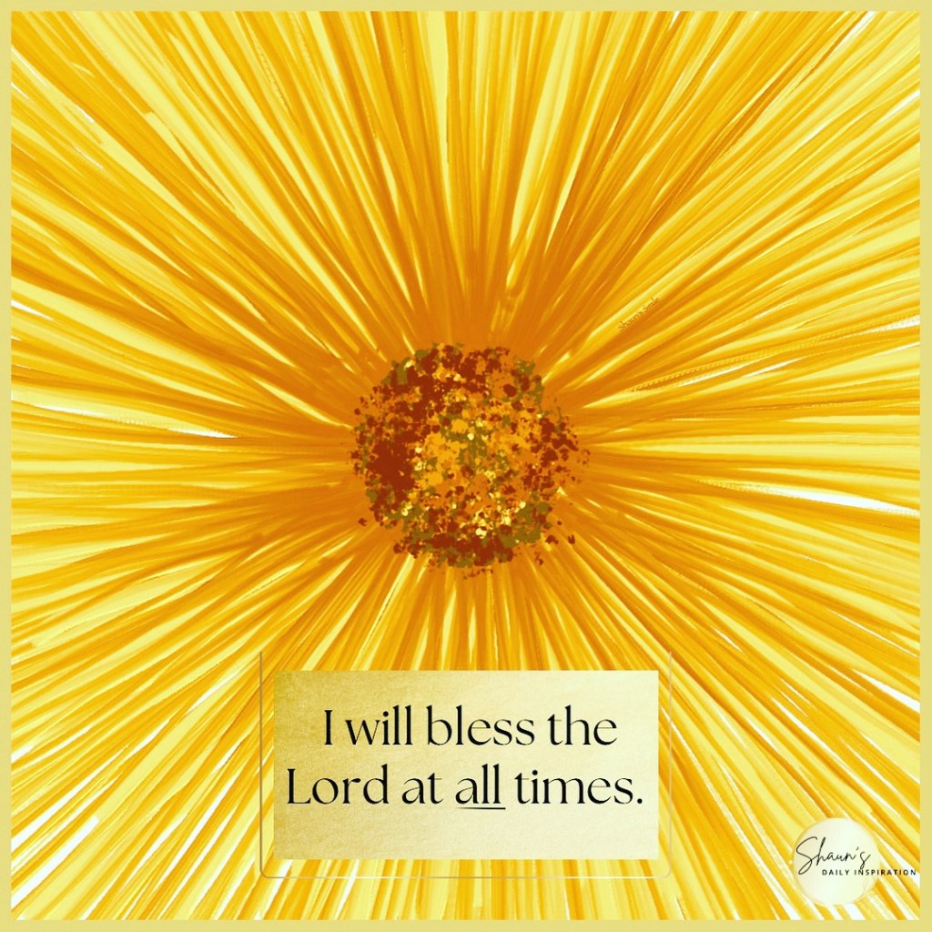 “I will bless the Lord at all times. His praise shall continually be in my mouth.” Psalm 34:1