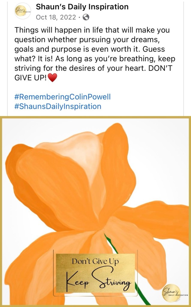 Here’s the Facebook memory that actually prompted my last post about Colin Powell (the hashtag).🥰