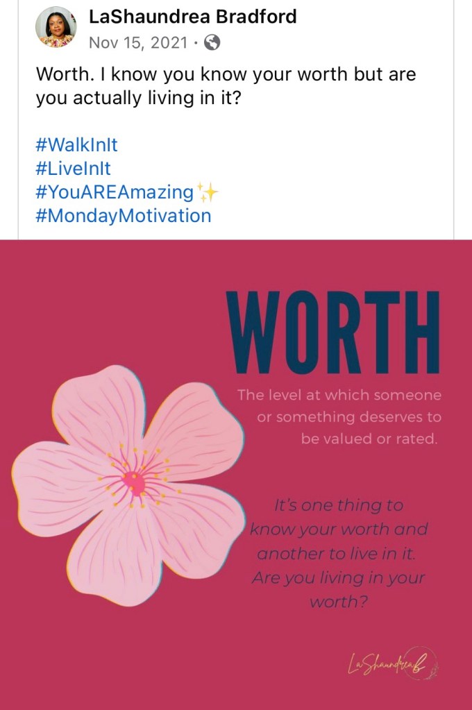Here’s a post I shared in 2021. The message about worth is great, but it’s the hashtags for me!