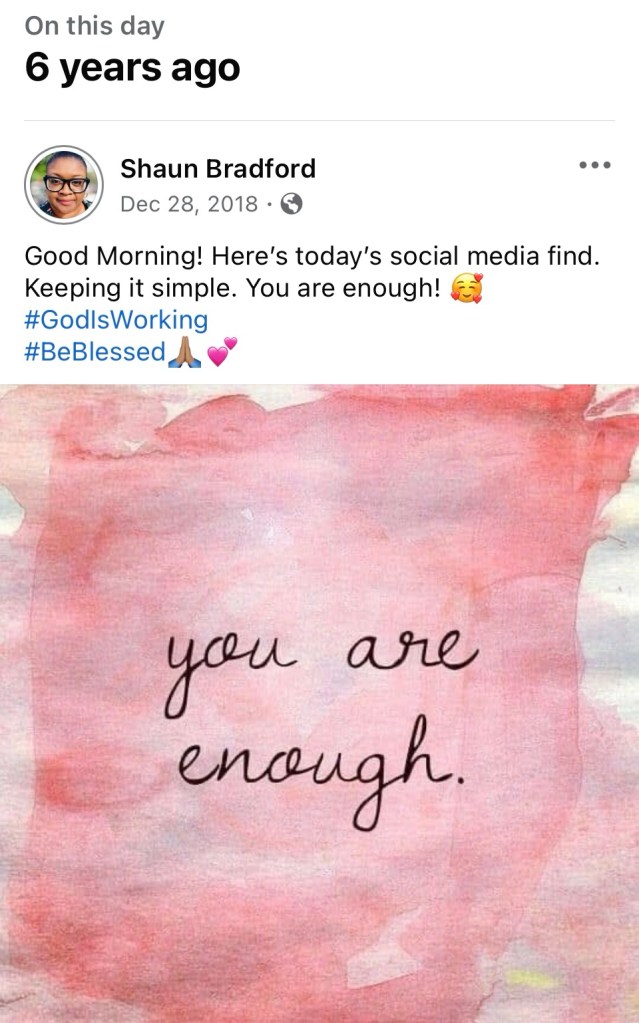 You are enough. Yes, YOU! God knew who you would be at this very moment in time. Accept His grace and rest in the fact that you are enough as you are.♥️