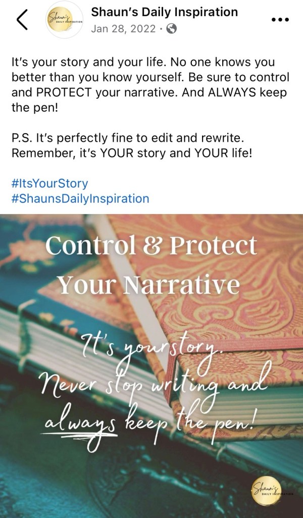You may not be able to control how people feel about you or everything they say. However, you can control what you do and how you would like to be remembered by others. Always remember that your life is your story. As I said in my post three years ago, it’s okay to edit and rewrite a few things as you go along. We all change over time, so don’t be afraid for your life to reflect those changes.
