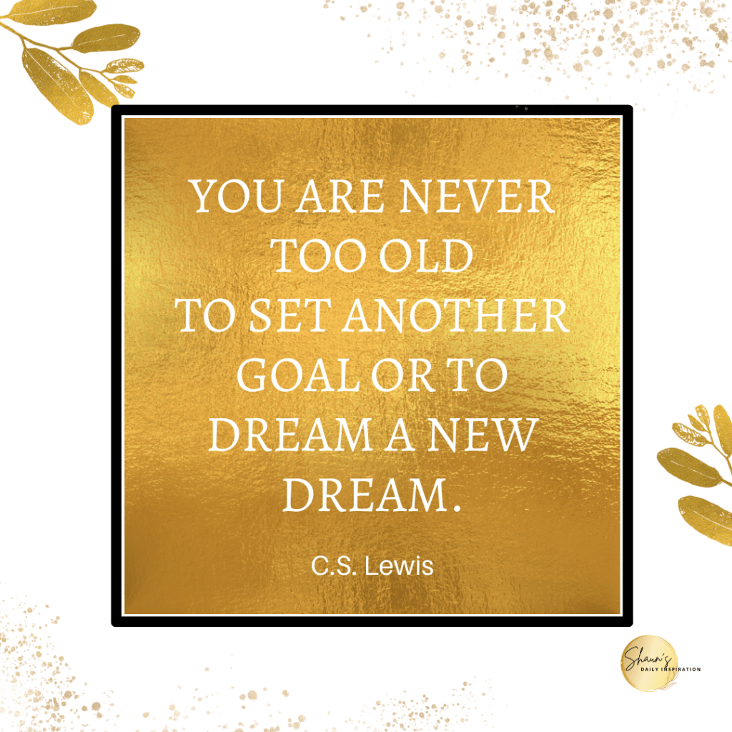 As C.S. Lewis said, “You are never too old to set another goal or to dream a new dream.”