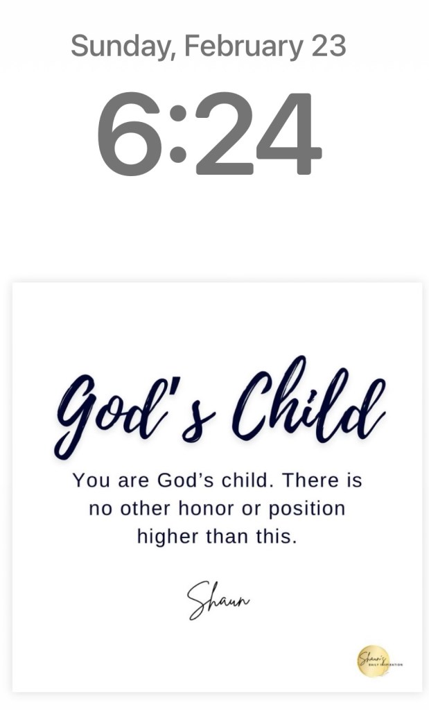 hope6:24 February 23, 2025 Shaun Bradford God’s Child.♥️ I love when I catch the time at 6:24—my birthday. Makes me smile.☺️ Share this: Click to share on X (Opens in new window) X Click to share on Facebook (Opens in new window) Facebook Like Loading... Published by Shaun Bradford My life is full of adventures— good and bad, and I’m living in every moment. Can’t help but be present. View all posts by Shaun Bradford
