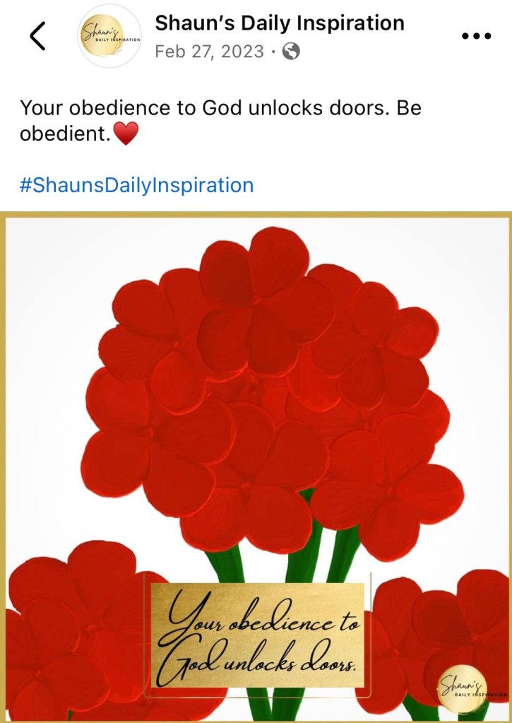 In 2023, I shared, “Your obedience to God unlocks doors.” Although this is true, I believe our obedience should be more important than any blessing we may receive. It’s our obedience that strengthens our relationship with God. It shows Him that we not only love Him, but we trust Him despite what He can do or give.