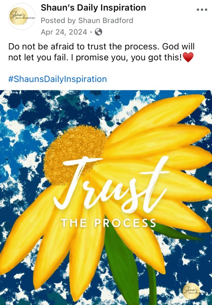 The posts I’ve shared over the last three years on this date are all true and interdependent. Trusting the process—God’s process—requires both our obedience and our trust in His timing. All three!♥️