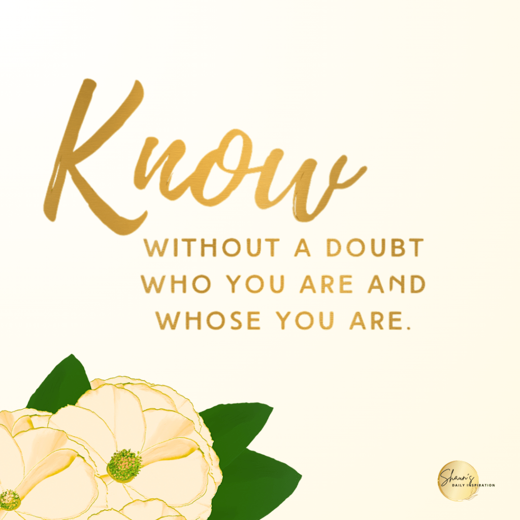 hopeKNOW May 3, 2025May 3, 2025 Shaun Bradford KNOWWithout a doubtWHO you areAnd WHOSE you are. Love you!♥️ Shaun Share this: Click to share on X (Opens in new window) X Click to share on Facebook (Opens in new window) Facebook Like Loading... Published by Shaun Bradford My life is full of adventures— good and bad, and I’m living in every moment. Can’t help but be present. View all posts by Shaun Bradford