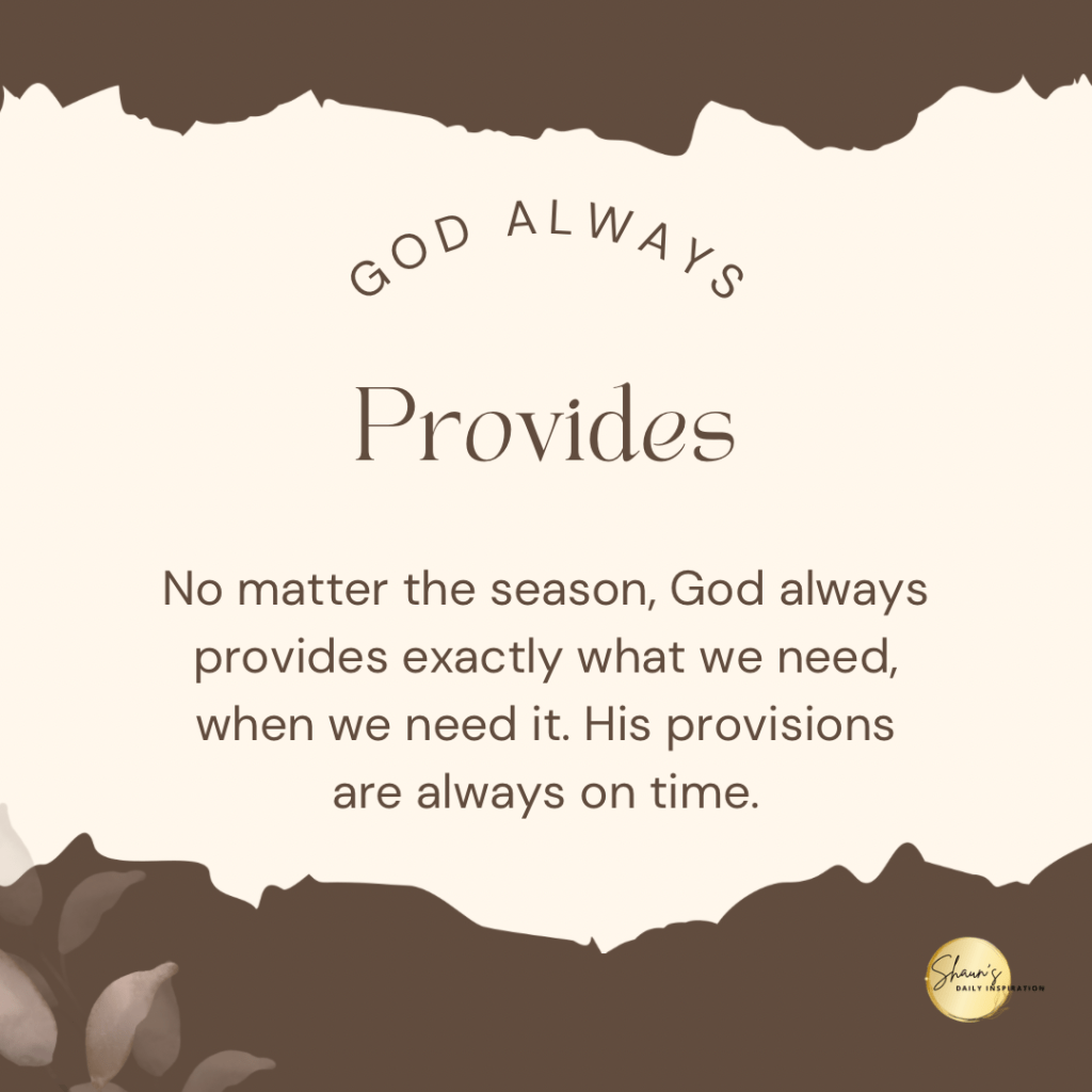 No matter the season, God always provides. And you can rest assured that His provisions will always be on time.♥️