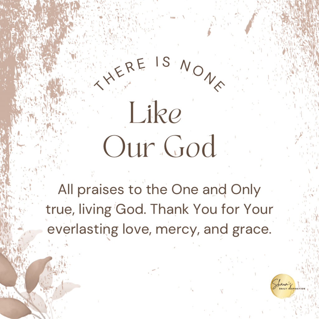 There is no one like our God. He is the Only true, living God. All praises to Him for His everlasting love, mercy, and grace.