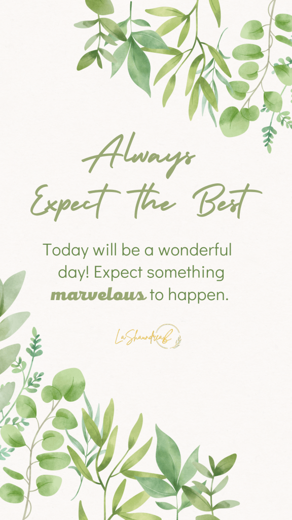 hopeAlways Expect The Best August 18, 2025 Shaun Bradford When you give your best, expect the best.♥️ Love you, Shaun Share this: Click to share on X (Opens in new window) X Click to share on Facebook (Opens in new window) Facebook Like Loading... Published by Shaun Bradford My life is full of adventures— good and bad, and I’m living in every moment. Can’t help but be present. View all posts by Shaun Bradford