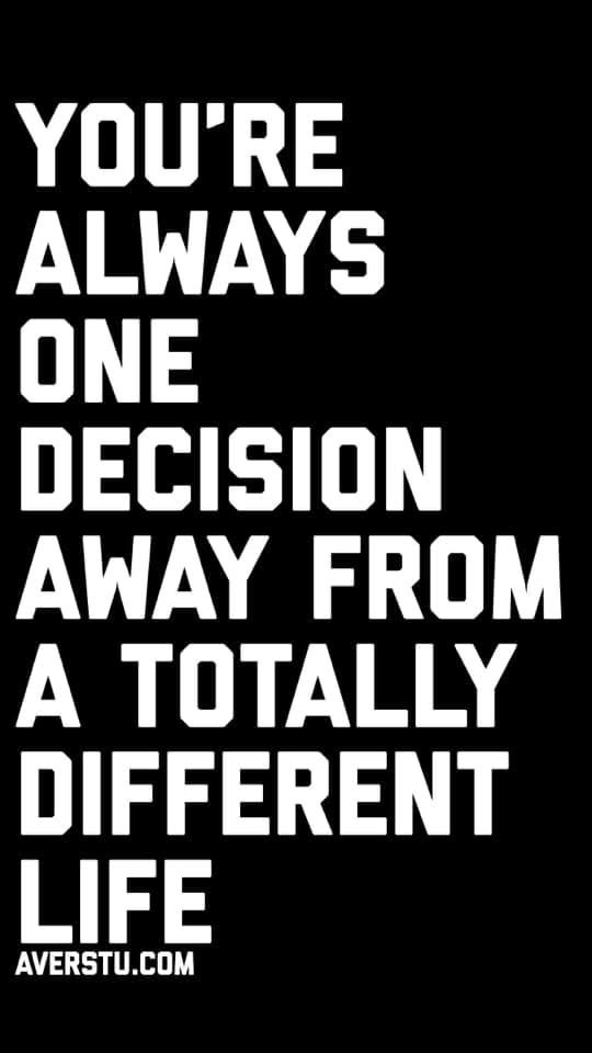 I believe the quote to be very true. We’re always one decision away from a totally different life. Whether we decide to stay still or move, say “yes” or “no,” make that call, send that text, make or respond to a post, exercise or not, eat out or cook (all things I struggle with daily, but by all means grab whatever resonates with you and/or add a few☺️), every decision—big or small—is a decision towards a different life.