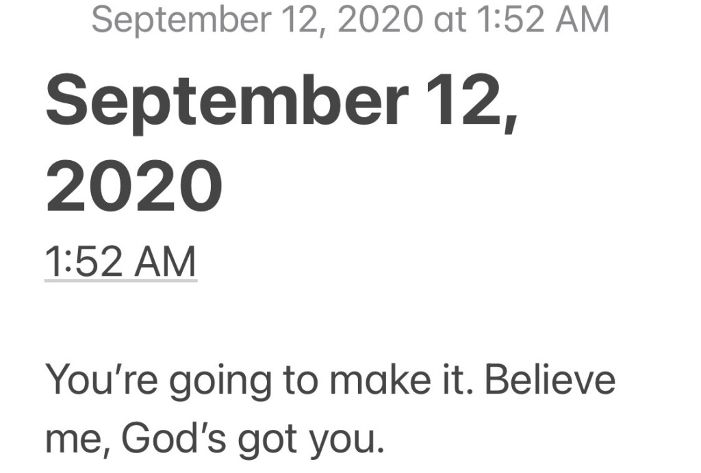 I found this screenshot of a message I had written in my notes on September 12, 2020. It is such a fitting reminder for today.