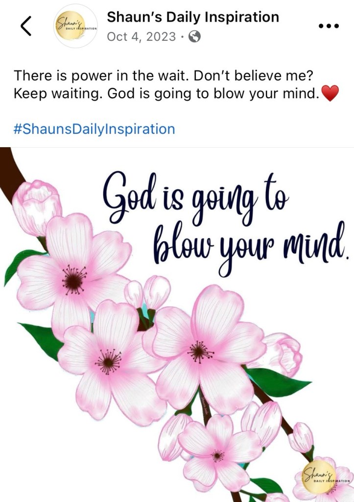 As I said two years ago, there is power in the wait. Be patient. Great things are heading your way. They’re already in motion. Believe me. God is going to blow your mind!♥️