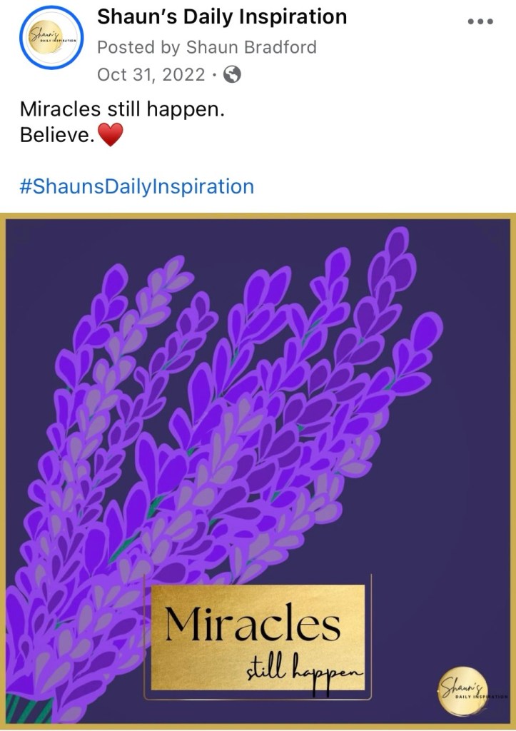 Singing Luther Vandross’ “Little Miracles.” The song says—