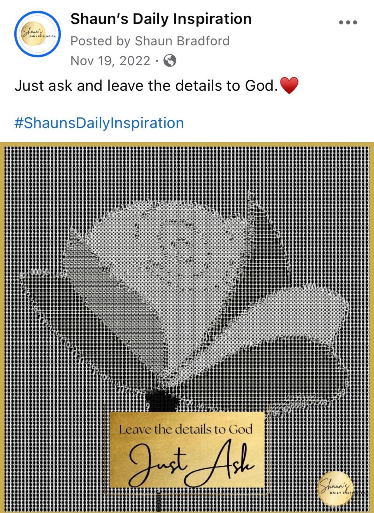 hopeKeeping This One Simple November 19, 2025November 19, 2025 Shaun Bradford Just ask.♥️ Love you, Shaun Share this: Click to share on X (Opens in new window) X Click to share on Facebook (Opens in new window) Facebook Like Loading... Published by Shaun Bradford My life is full of adventures— good and bad, and I’m living in every moment. Can’t help but be present. View all posts by Shaun Bradford