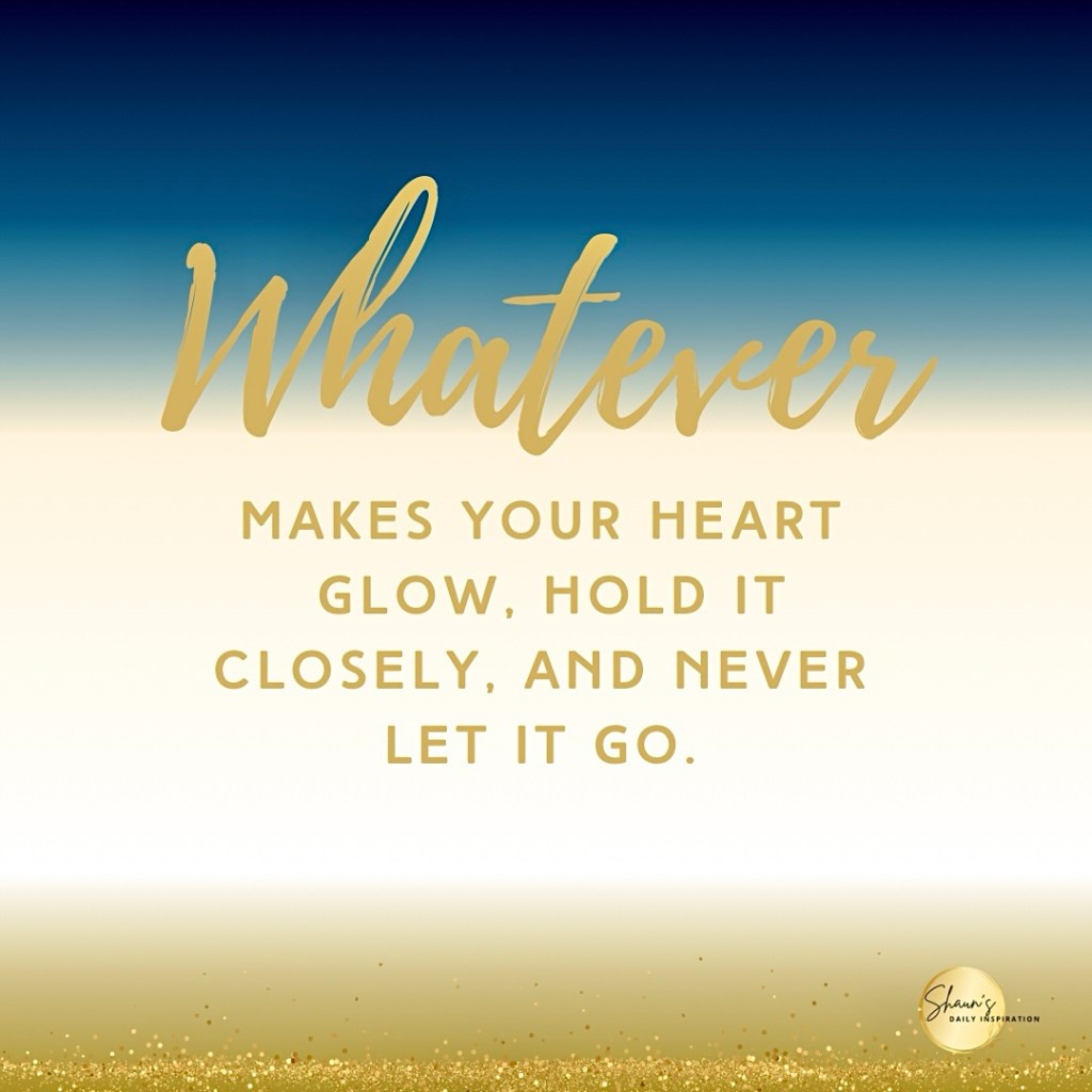 Whatever makes your heart glow, sing, sparkle, and shine, hold it closely and never, ever let it go.