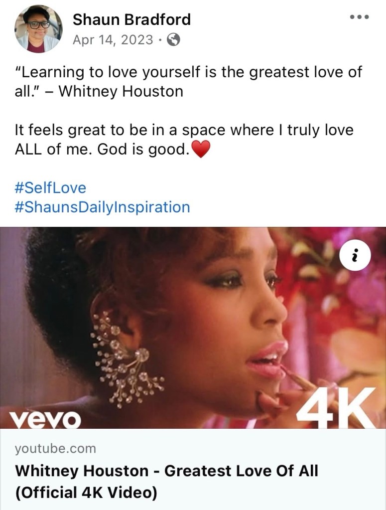 On this day three years ago, I was listening to Whitney Houston’s “Greatest Love of All.”