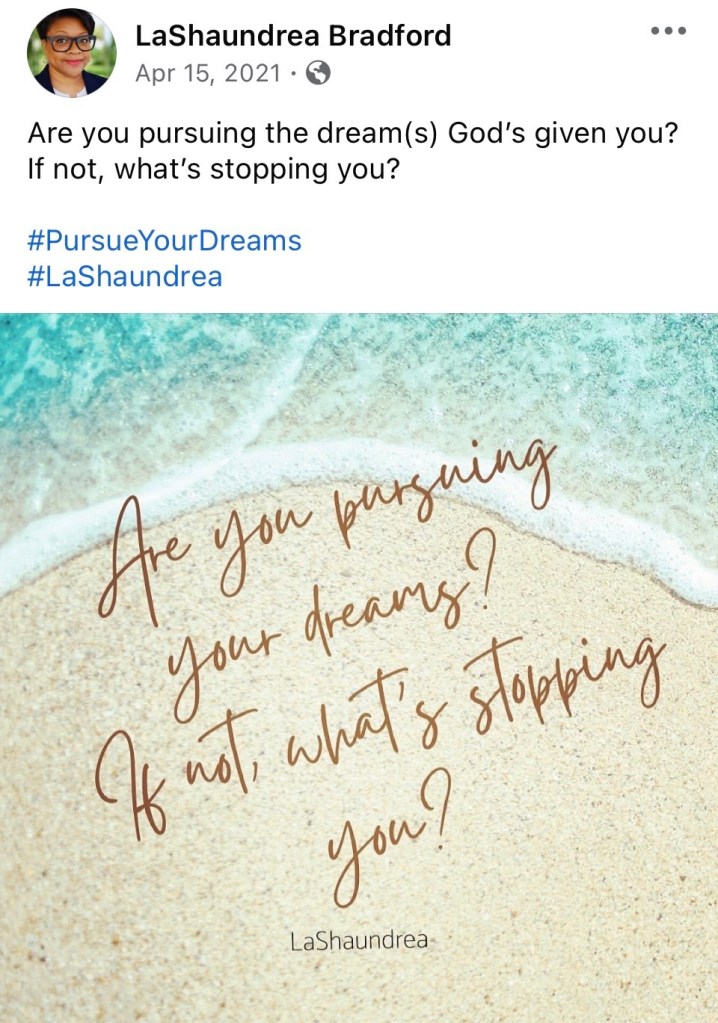 Are you pursuing your dream(s)? And, if not, what’s stopping you?