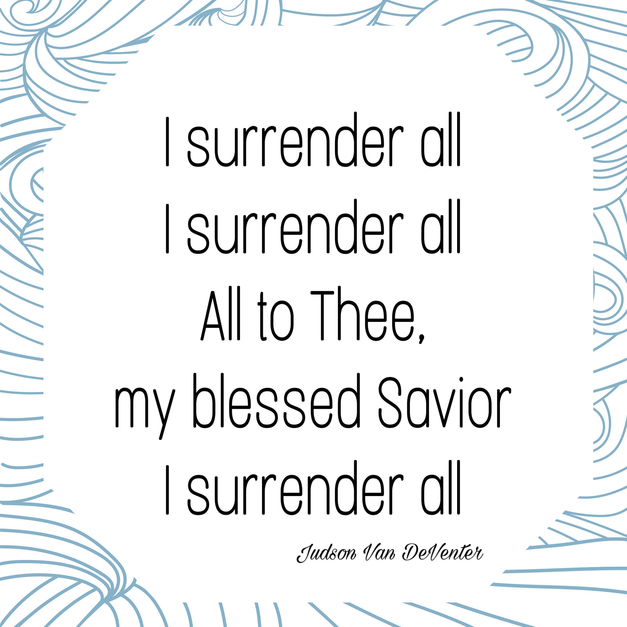 I surrender all I surrender all All to Thee, my Blessed Savior I surrender all