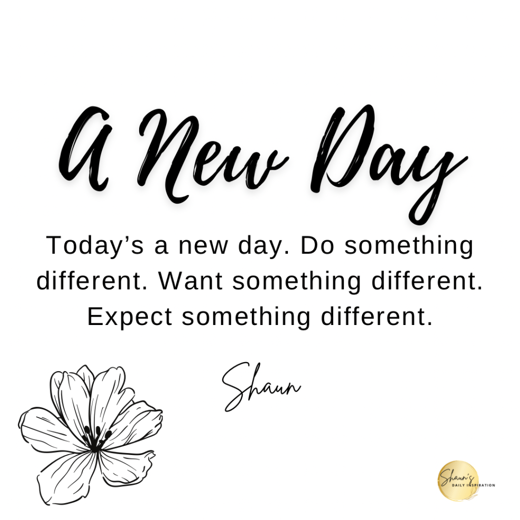 Today is a new day! In other words, it’s an opportunity for a new beginning. An opportunity to do something different. To want something different. To expect something different.