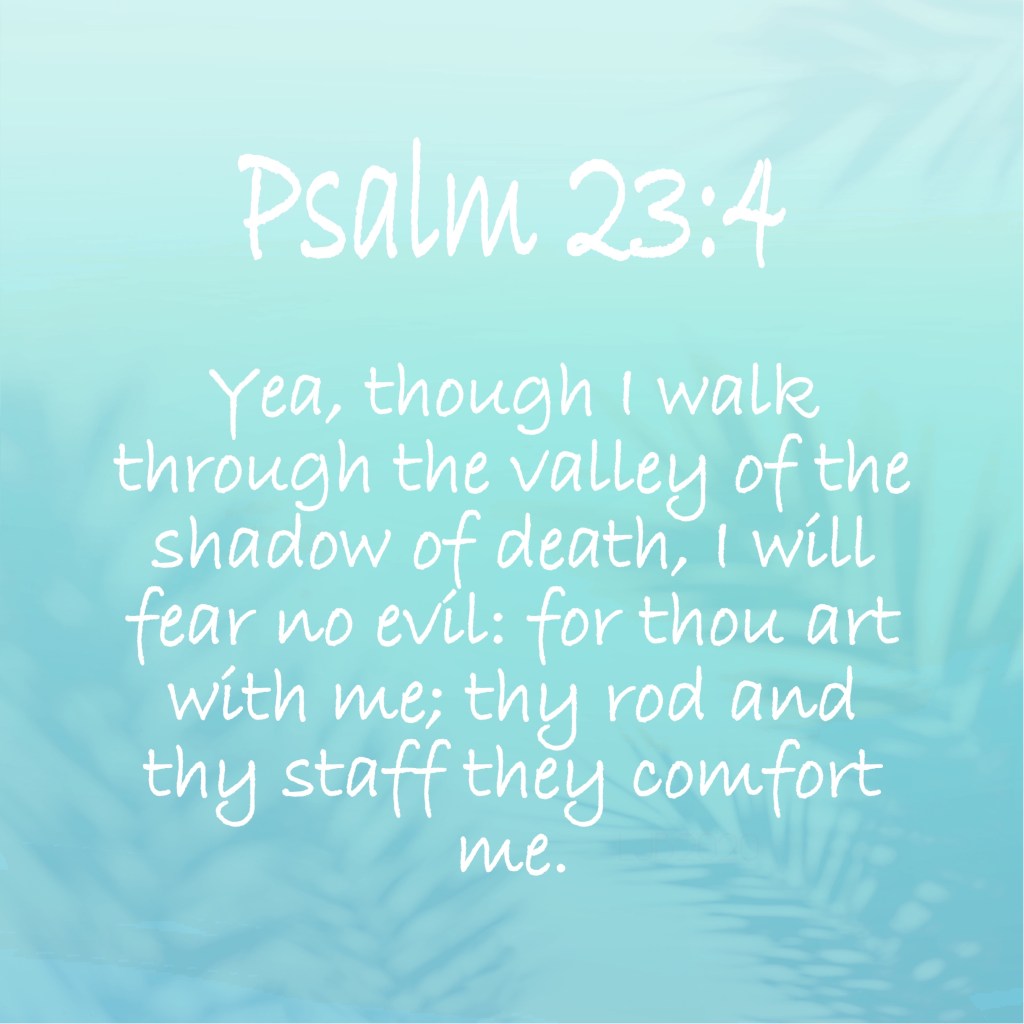 4 Yea, though I walk through the valley of the shadow of death, I will fear no evil: for thou art with me; thy rod and thy staff they comfort me.