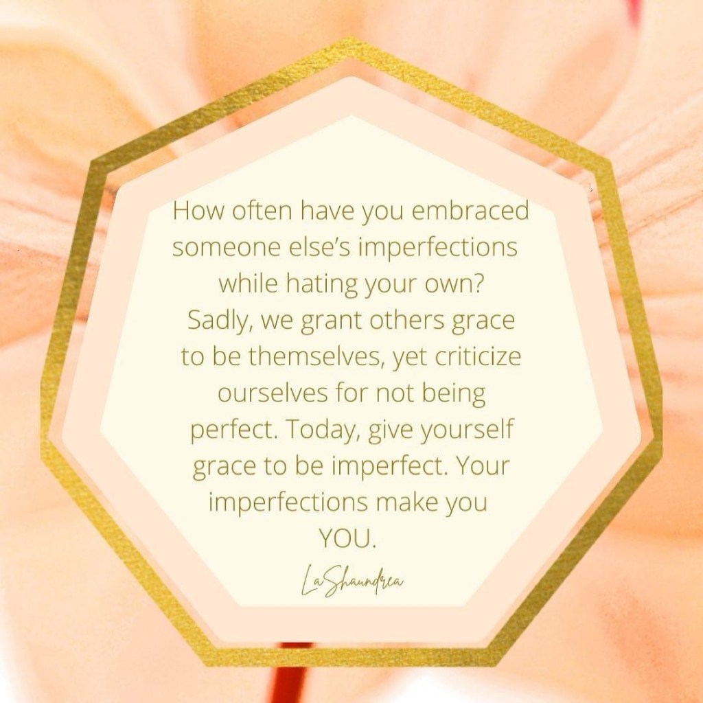 What would life be like without flaws? I believe our imperfections represent God’s perfection. He never intended for us to be clones or perfect. Today, I encourage you to embrace YOU, the real you, imperfections and all. Believe me, YOU make life exciting!