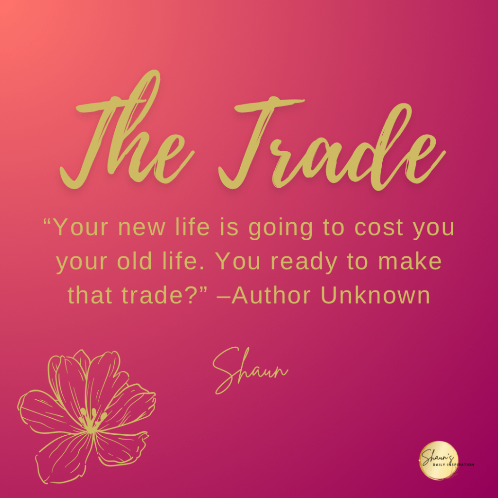 “Your new life is going to cost you your old life. You ready to make that trade?” –Author Unknown