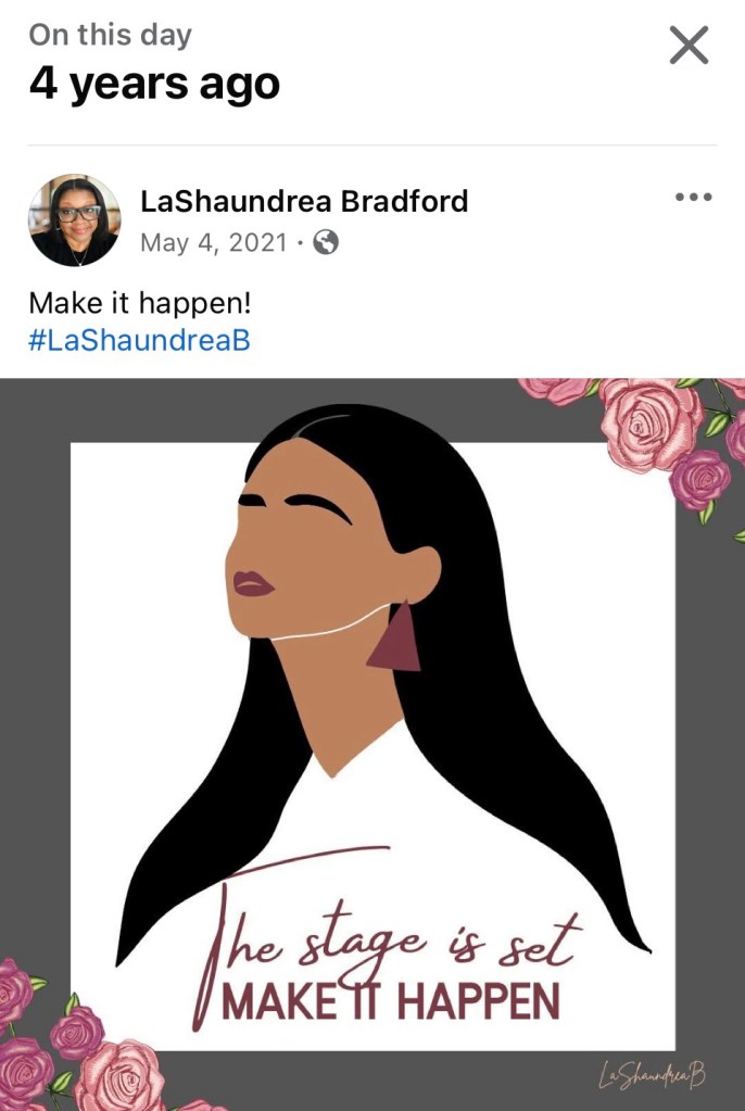 Over the past four years, I have used this same graphic in different posts. However, the first time I used it was on May 4, 2021. I went to look for further context and could only find this graphic and caption, “Make it happen.” Even on this site, I had only shared the graphic in the story format (when WordPress was doing stories).