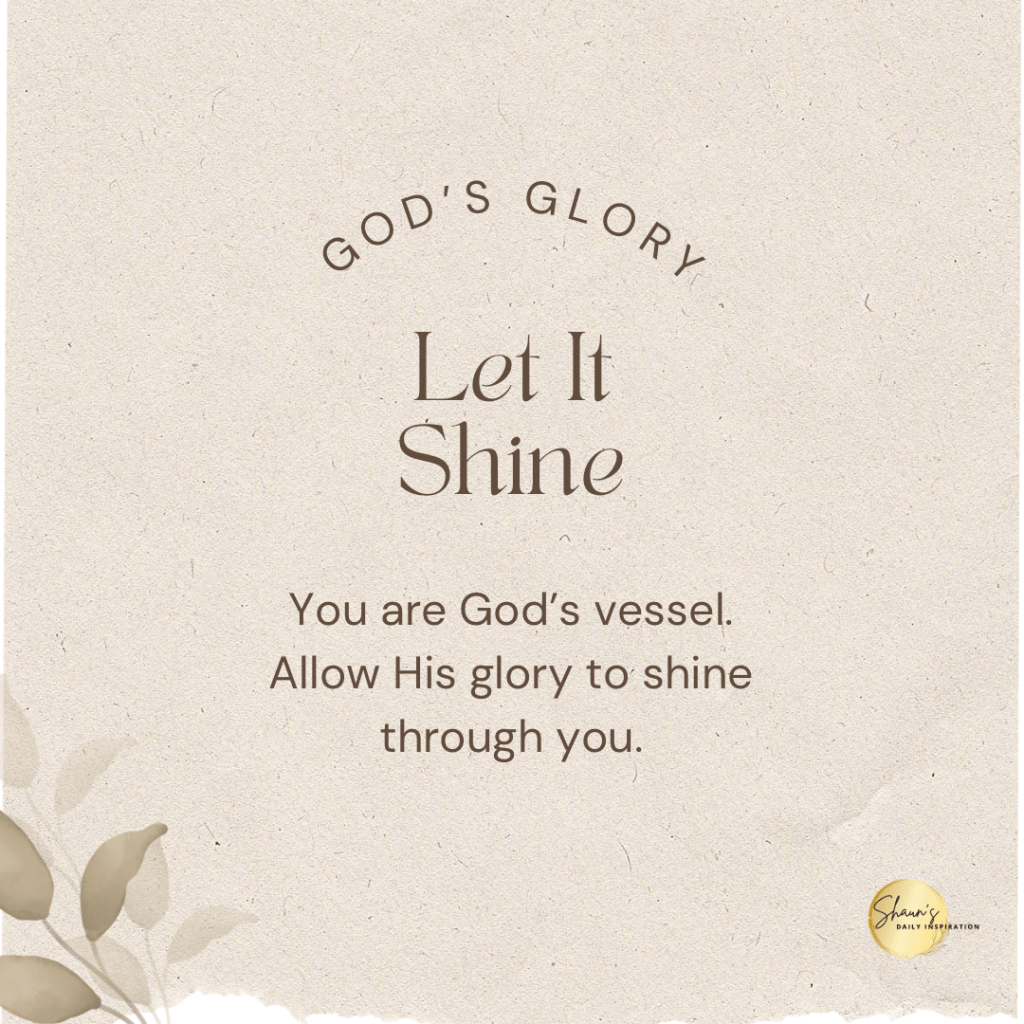 You are God’s vessel. Allow His glory to shine through you. Let the world know that you are His.♥️