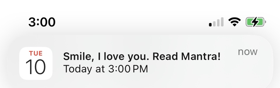 A couple of years ago, I scheduled a daily alert to remind myself to smile—not just for no reason but because I loved myself. Then, I added that I should read one of my mantras.