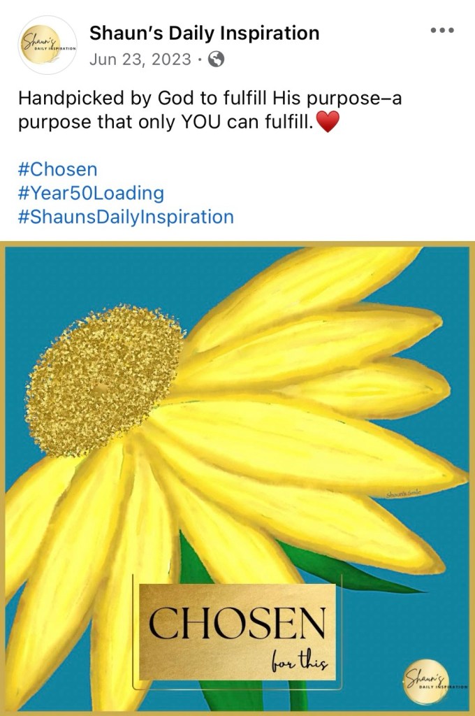 Here’s what I shared on my Shaun’s Daily Inspiration page—