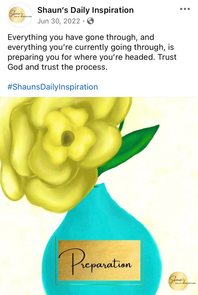 Since turning 50, I have experienced quite a few full-circle moments, many of which I didn’t see coming. Today, I had another one of those moments. The Facebook post I shared three years ago is still true—what you’ve gone through or are currently going through is preparing you for where you’re headed. Hang in there. Trust God, His process, and His plan. Stay open to opportunities that resurface. They are not all negative. I’m finding most are opportunities to do things better or move us towards our goals and dreams.