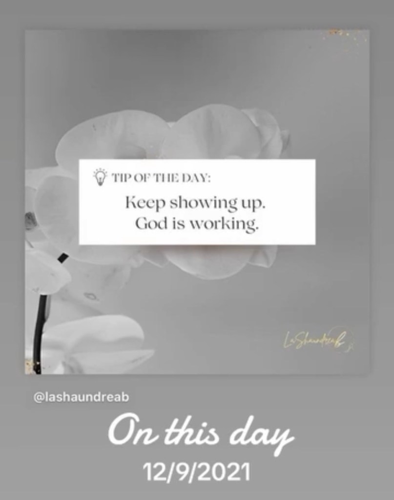Laughing because I really didn’t want to show up this morning. Just being honest. I fell asleep before I could schedule my first post, then I woke up at 4:29 AM—a minute before my post usually publishes—and said I was going to just let today slide. I didn’t feel like writing anything, and after seeing my Facebook memories, I didn’t want to share any of them either. So I decided to journal. Well, while journaling, I was reminded of one of the Facebook memories I didn’t want to share. The one that I needed at the moment—to keep showing up. So, here I am showing up.
