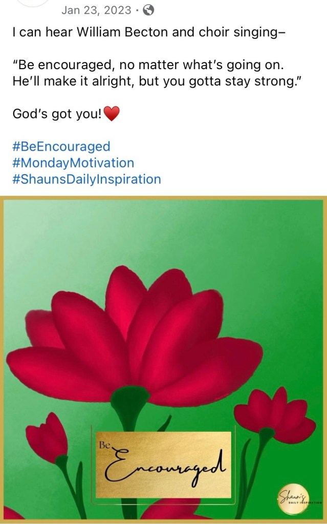 Seeing the words “Be Encouraged” made me smile and momentarily gave me a sense of hope.