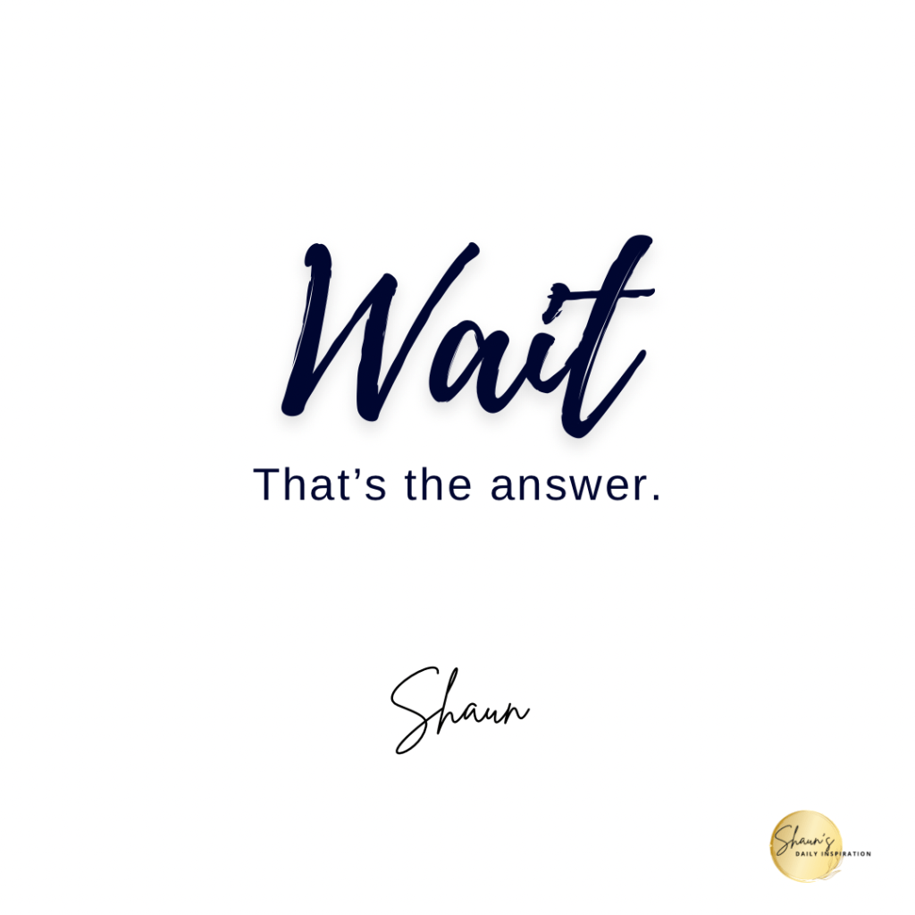 If God tells you to “wait,” then wait. Don’t try to rush things along by interfering with what God is doing. Waiting means setting aside what you’re waiting for and focusing on something else—believe me, there are plenty of other things to focus on—without constantly checking or asking God if it’s time. Leave it alone. God will let you know when the wait is over. In the meantime, enjoy what you have right in front of you.